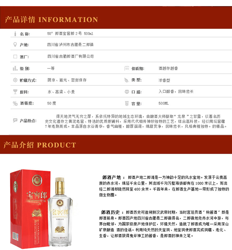 酒博城 郎酒 50度郎酒宝窖郎品典2号 浓香型 郎酒畅销款