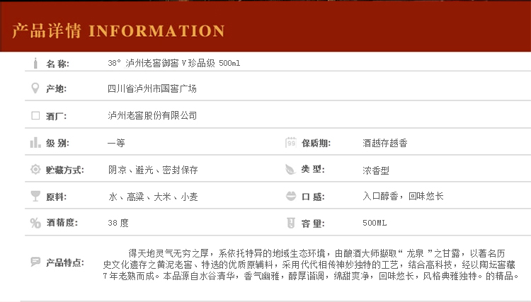 酒博城 38度泸州老窖 御窖V珍品级 500ml浓香型 国产白酒正品